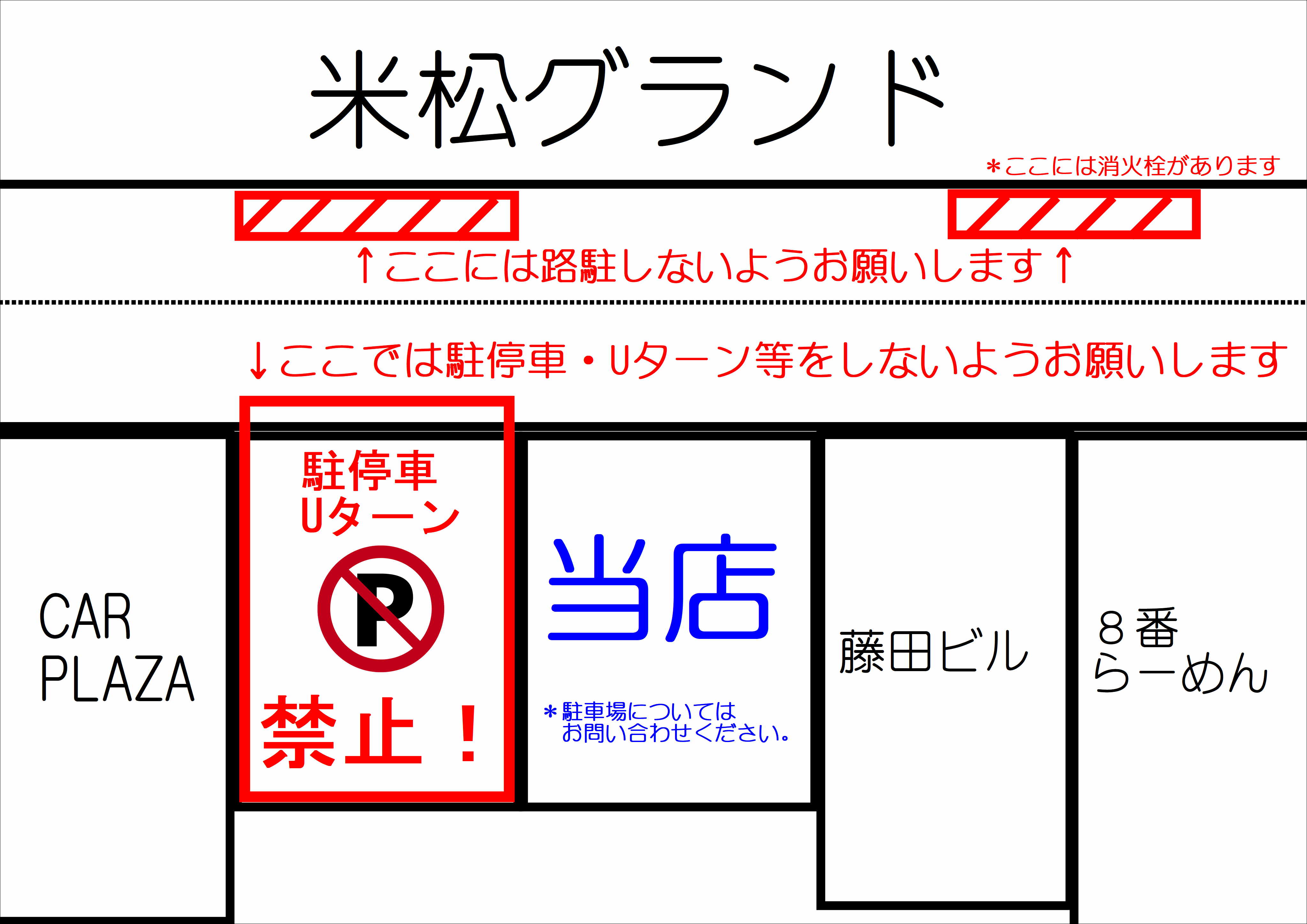 尚、駐車場に関してのトラブルについては当店は一切の責任を負いません。